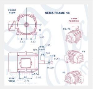 Each frame size is designated with a frame number, and we have compiled all the dimensions for each frame size into easy-to-read drawings. Simply select the frame number of interest and all of the NEMA standardized dimensions will be displayed. It’s important to remember that the frame numbers do not indicate the motor’s electrical characteristics.