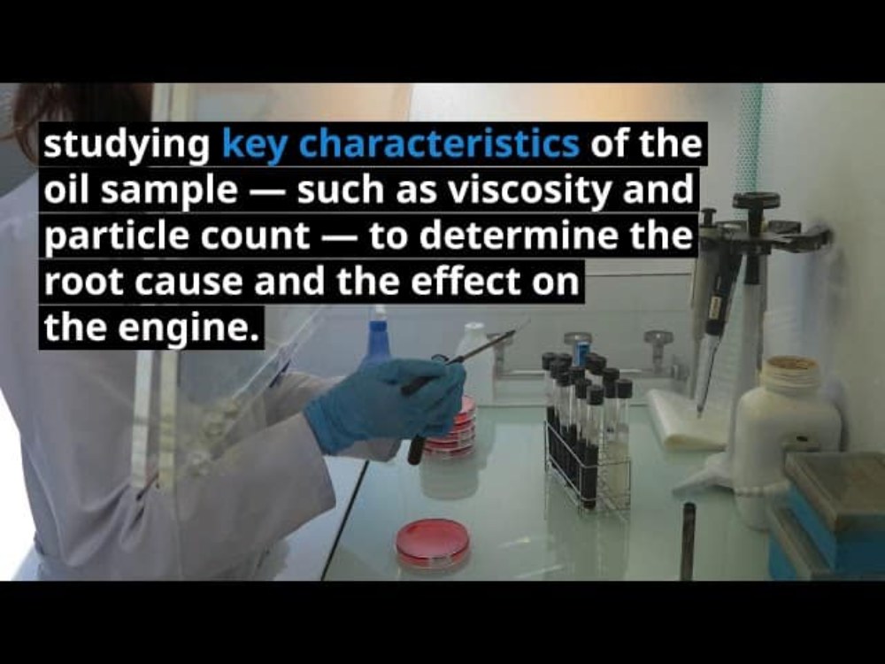 Once the sample is taken, the lab can conduct the actual analysis, studying key characteristics of the oil sample — such as viscosity, water/coolant contamination, fuel dilution, solids, total base number, total acid number, and particle count — to determine the root cause and the effect on the engine.