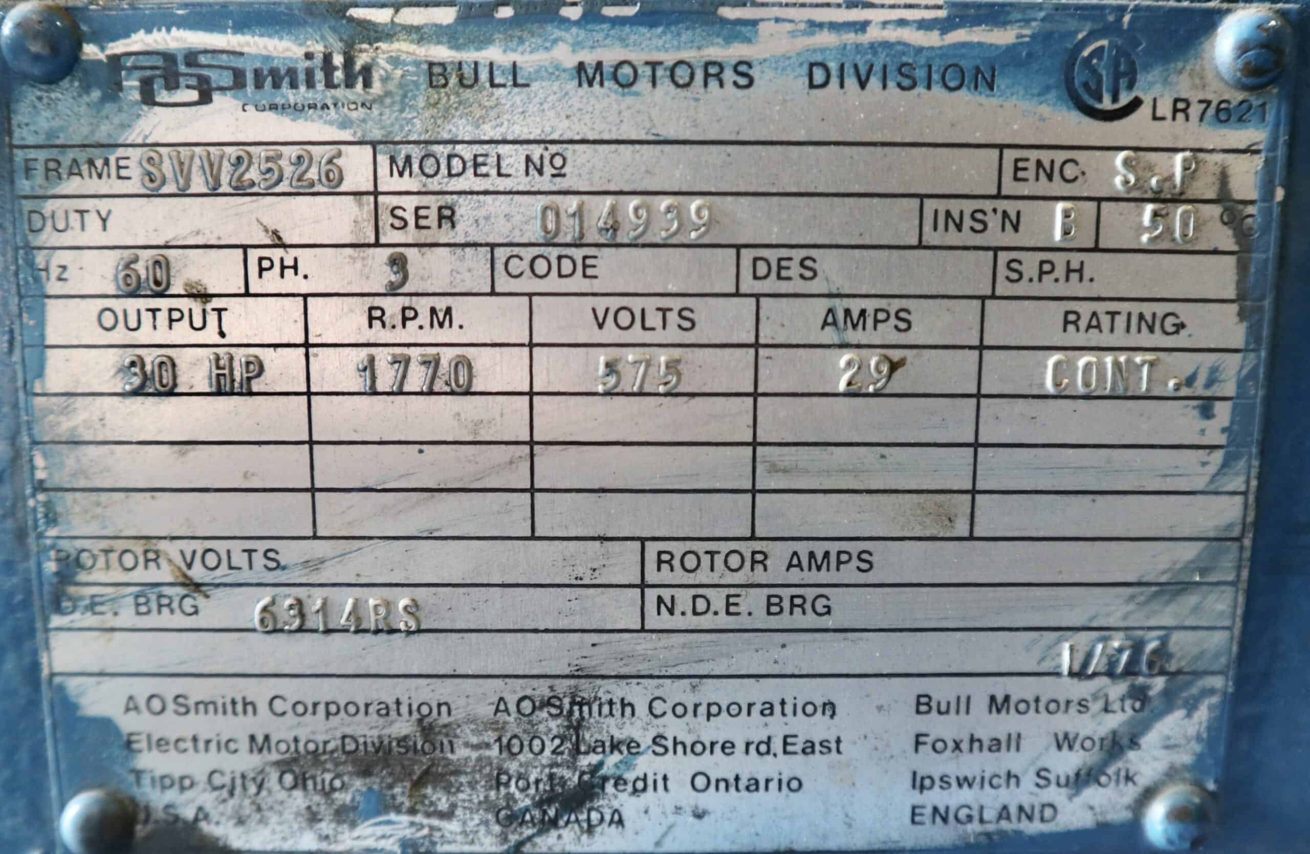 AO Smith/Bull Generator 30HP 20KW 1770RPM SVV2526 #324