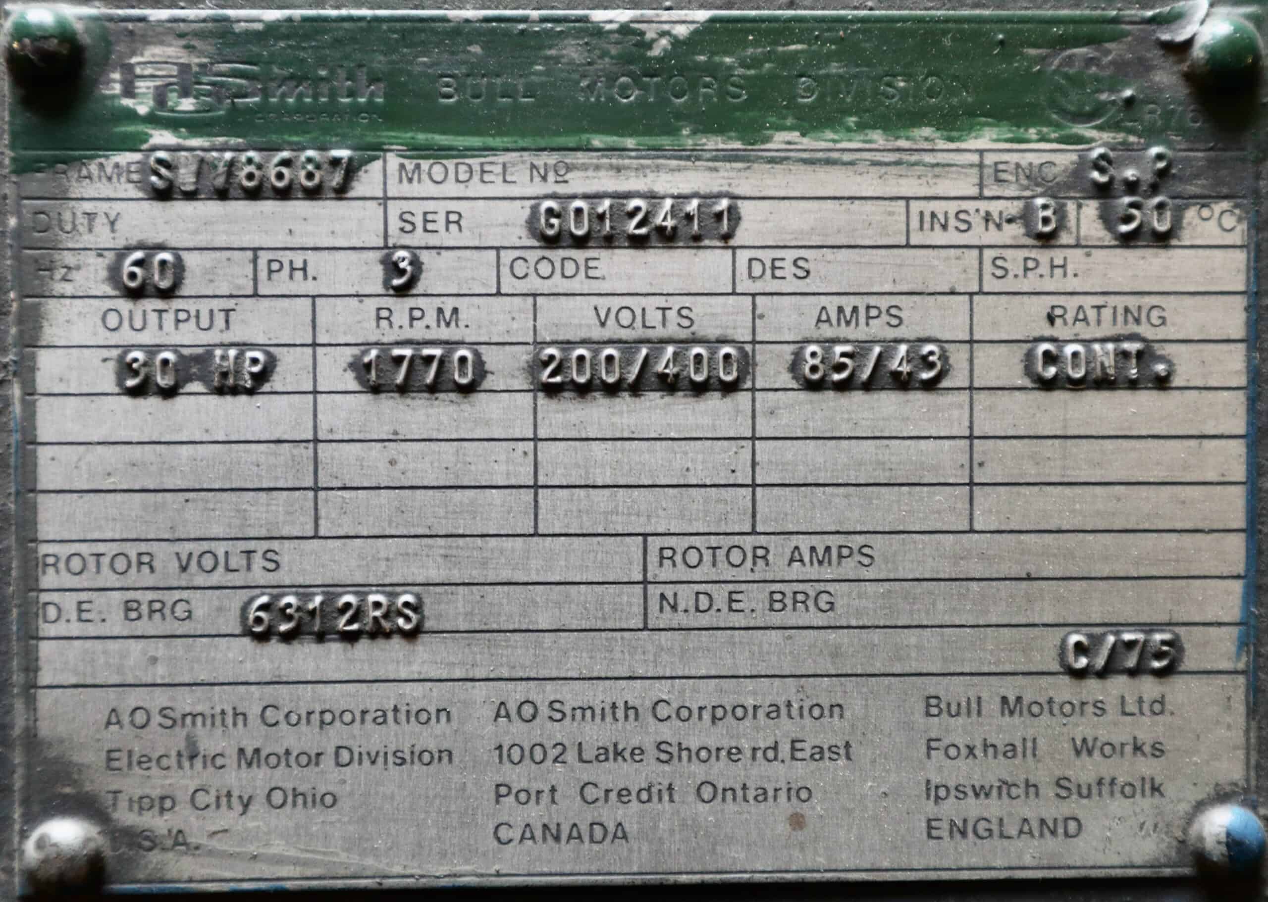 AO Smith/Bull Generator 30HP 20KW 1770RPM SVV8687 #0117