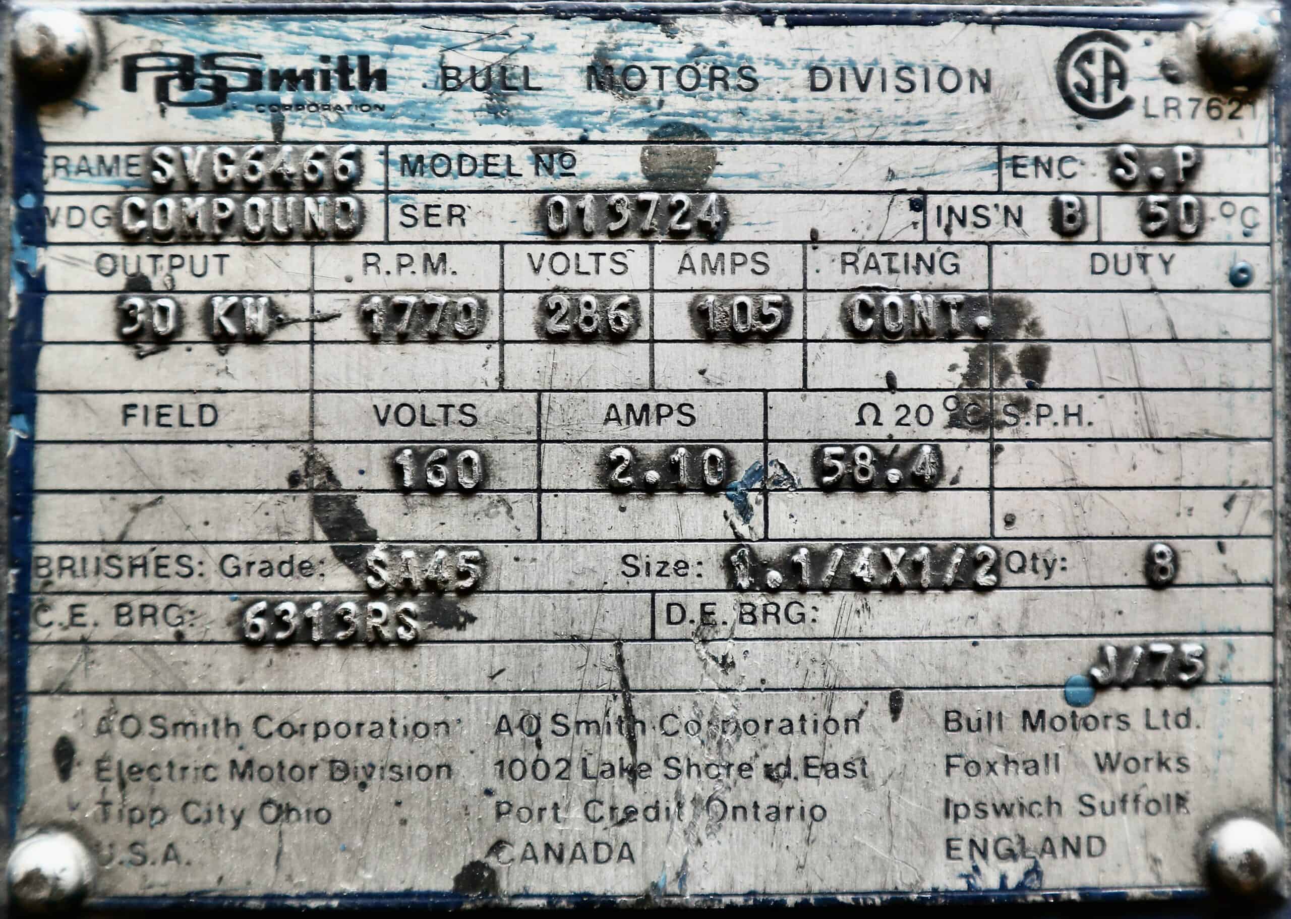 AO Smith/Bull Generator 45HP 30 KW 1770RPM SVG6466 #326