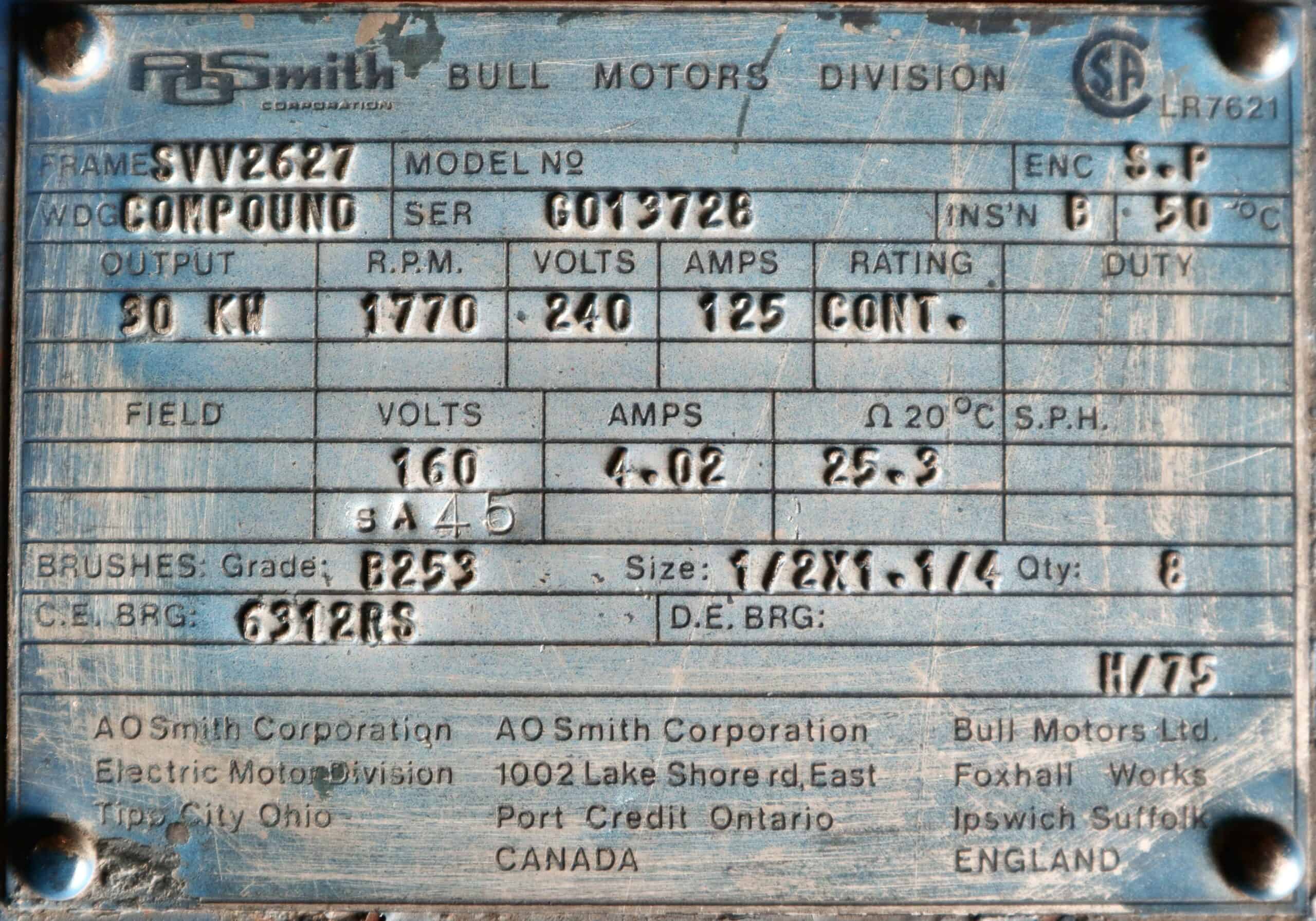 AO Smith/Bull Generator 50HP 30KW 1770RPM SVV2627 #388