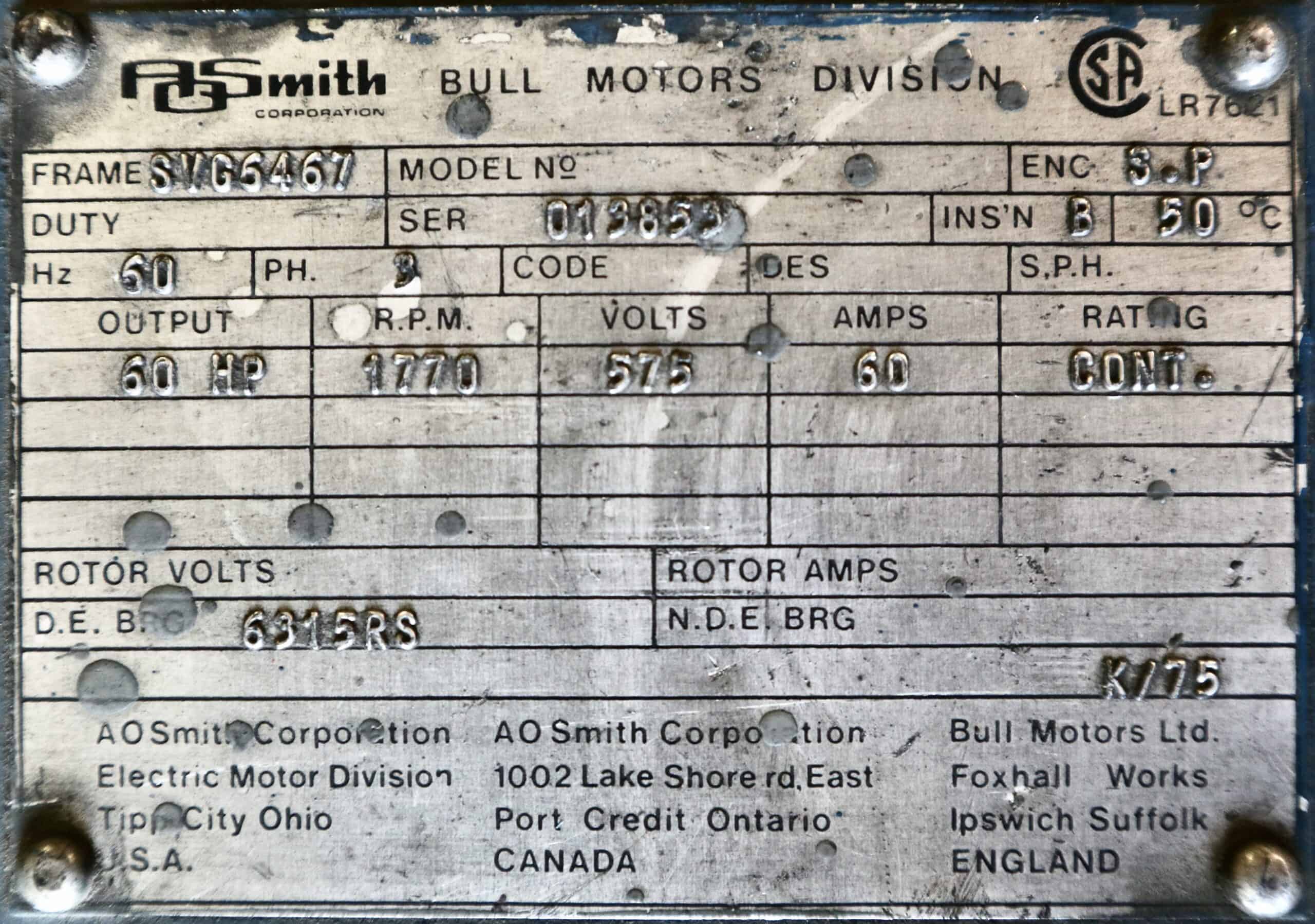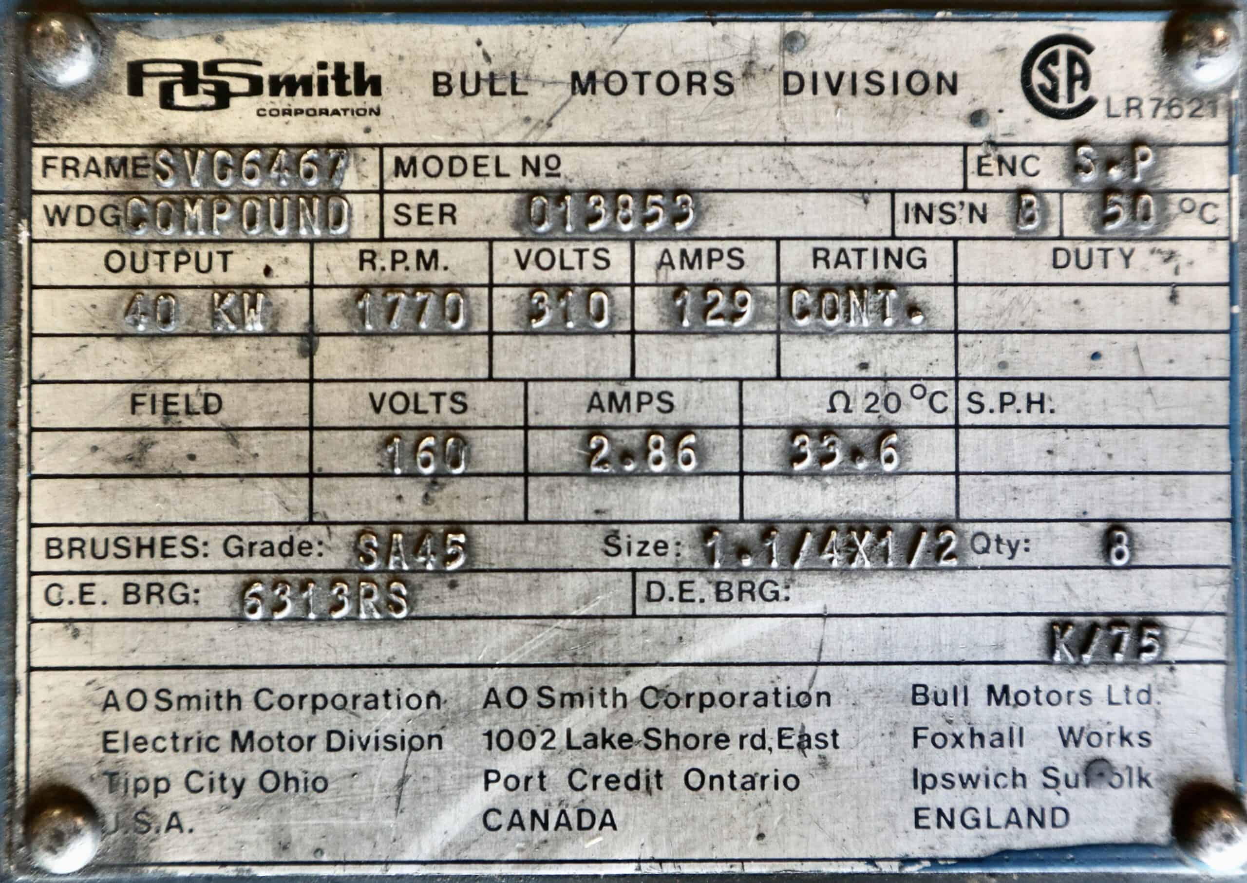 AO Smith/Bull Generator 60HP 40KW 1770RPM SVG6467 #336
