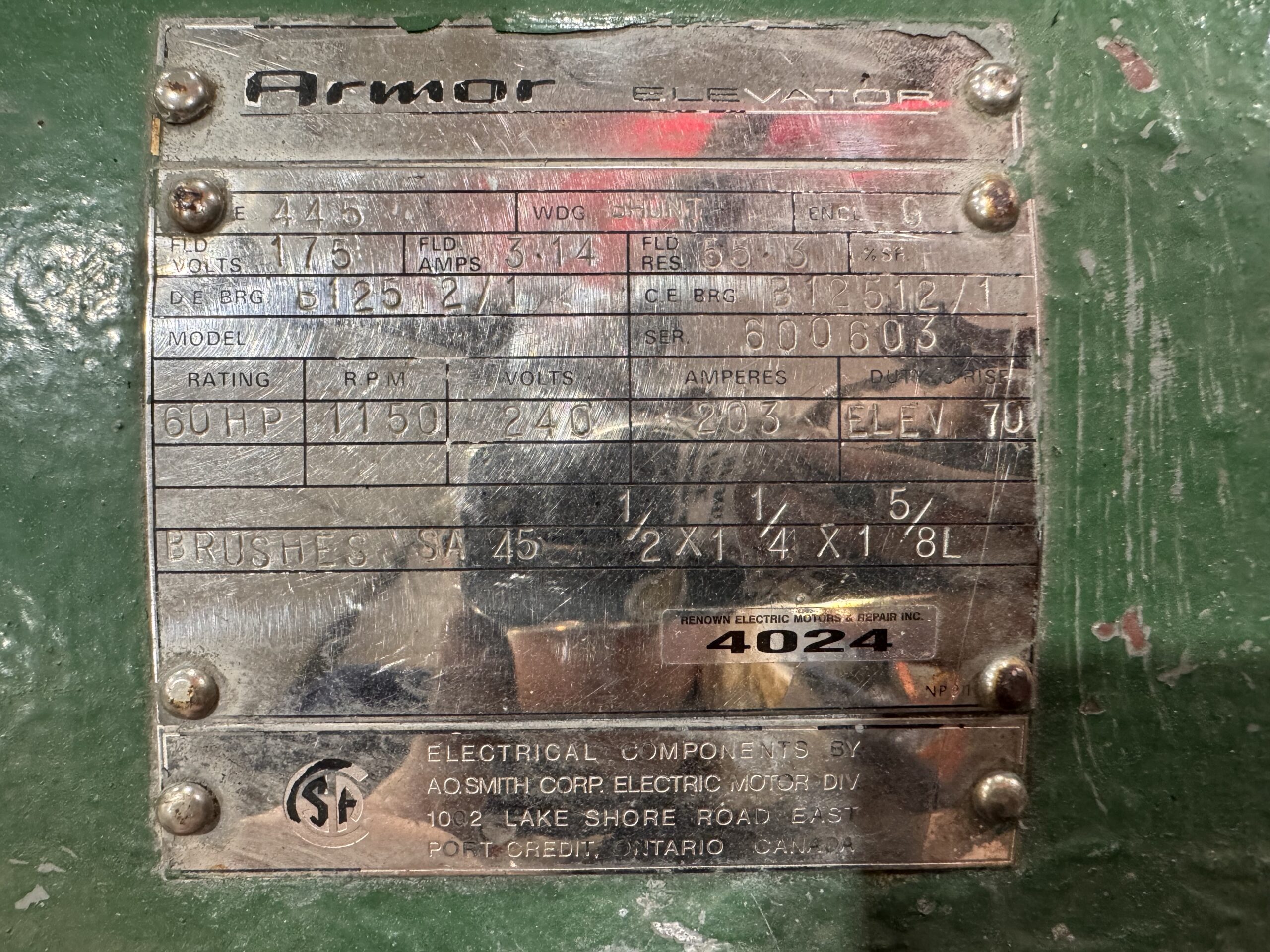 Item # 4024 — Armor DC Hoist 60HP 1150RPM 445 #4024