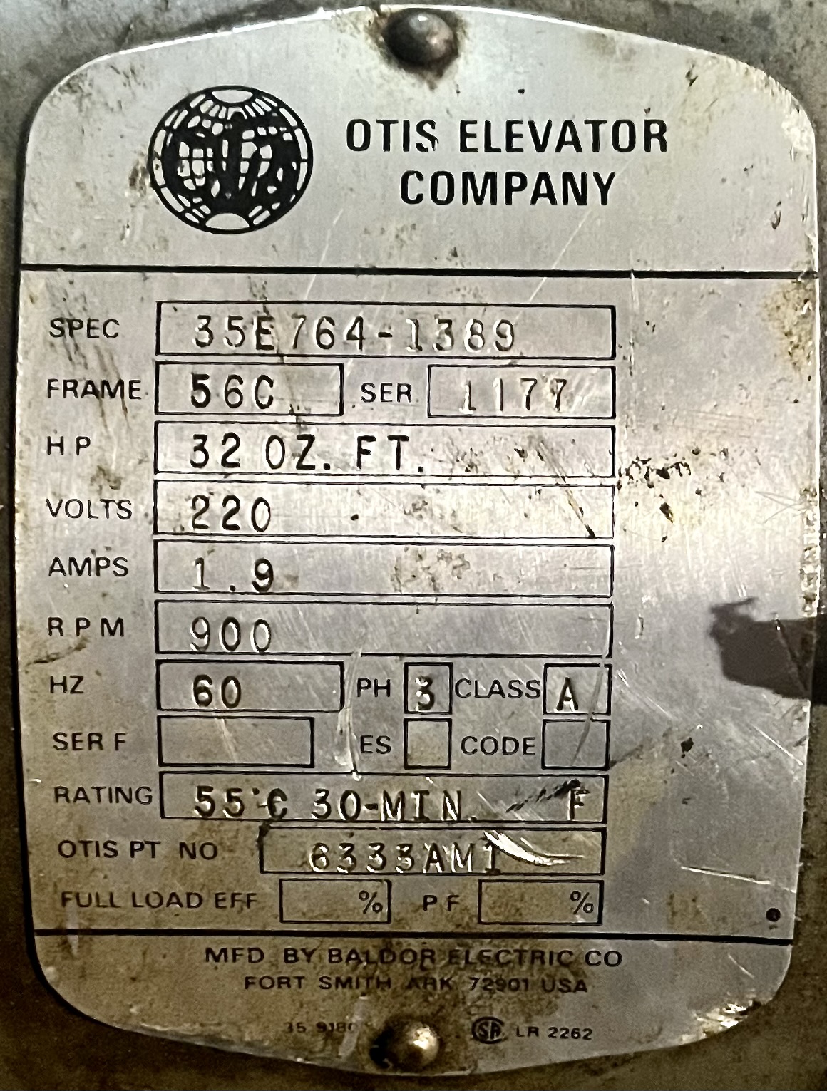 Baldor Otis Door Motor 32 OZ. FT. 56C #1051