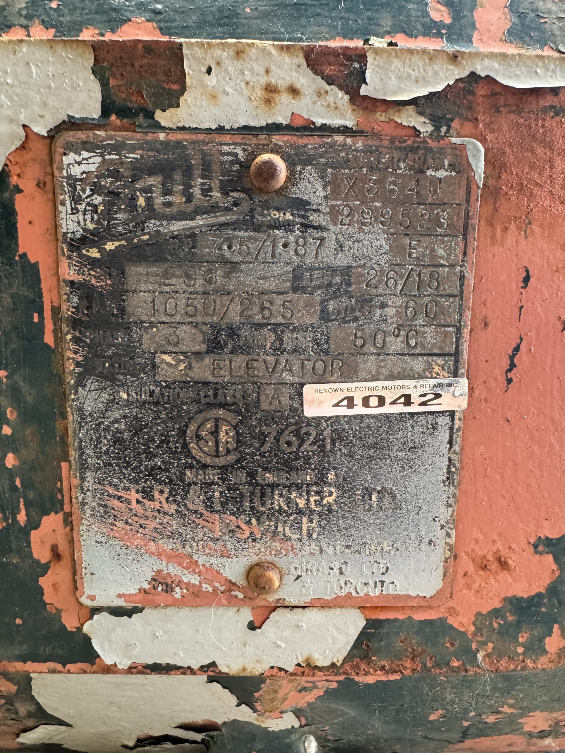 Item # 4042 — Bull 2 Speed AC Hoist Motor 7.5/1.87HP 1050/265RPM X364U #4042