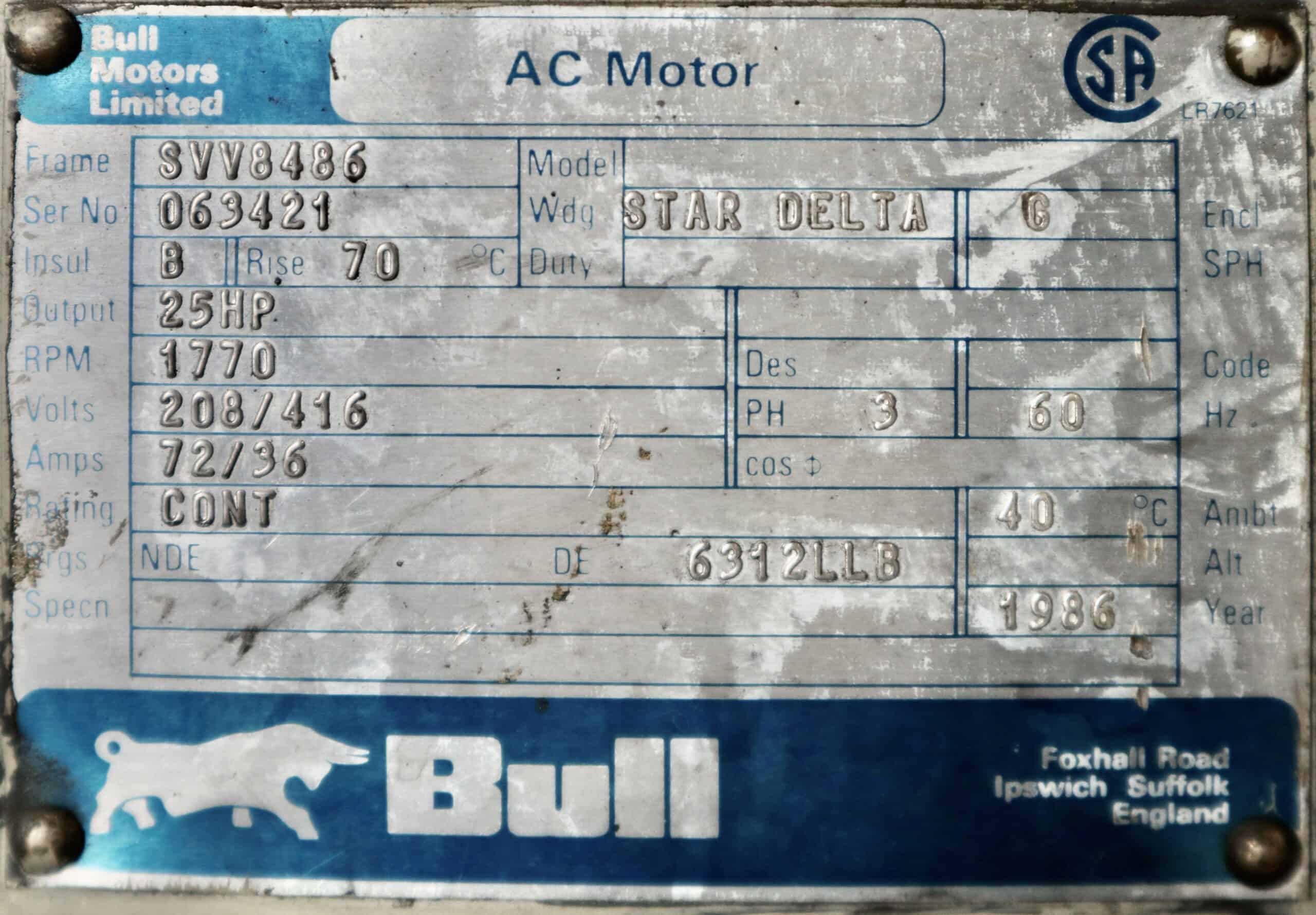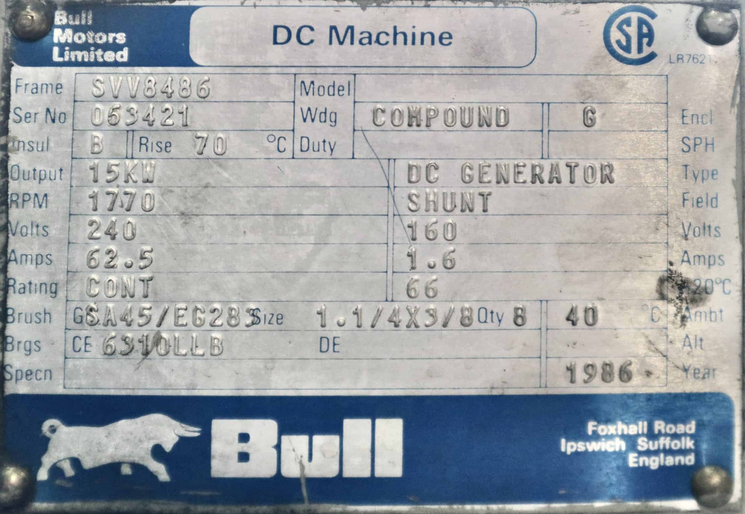 Item # P.O.232 — Bull Generator 25HP 15KW 1770RPM SVV8486 #232