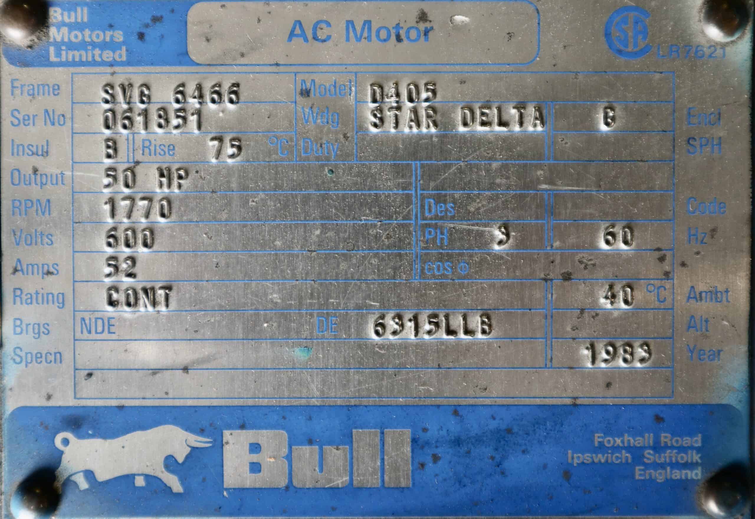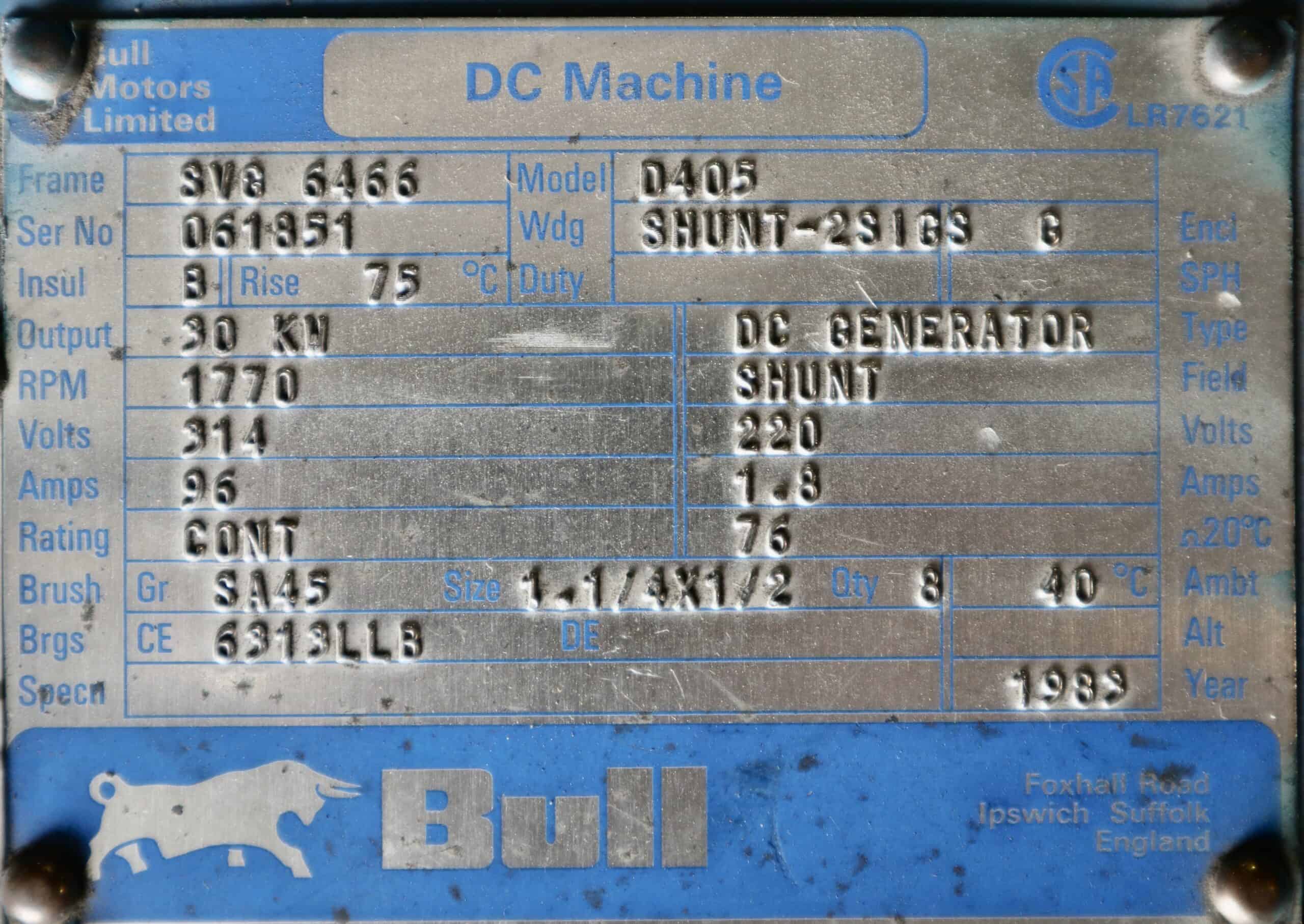 Item # P.O.384 — Bull Generator 50HP 30KW 1770RPM SVG6466 #384