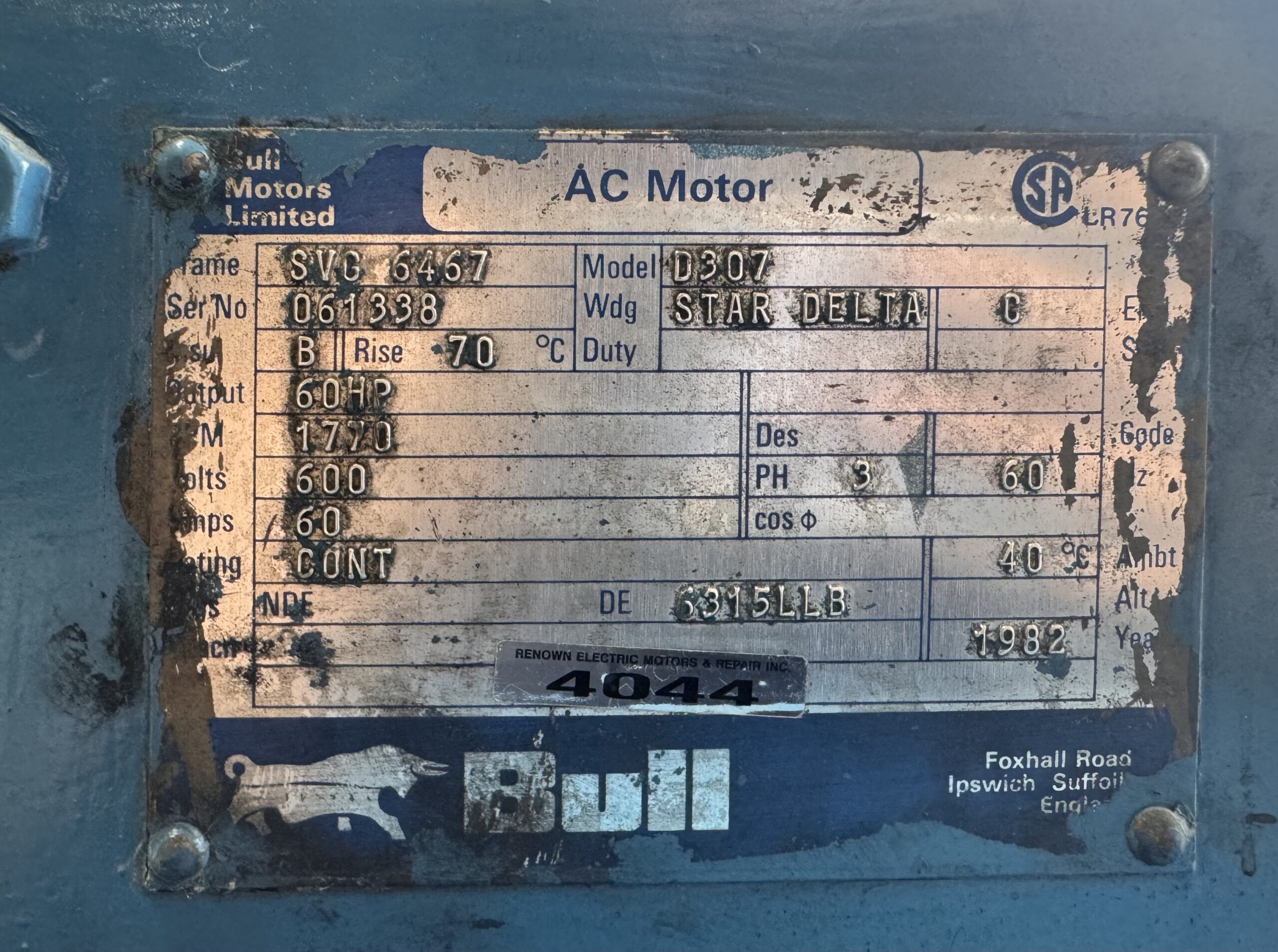 Item # 4044 — Bull Generator 60HP 40KW 1770RPM SVG 6467 #4044