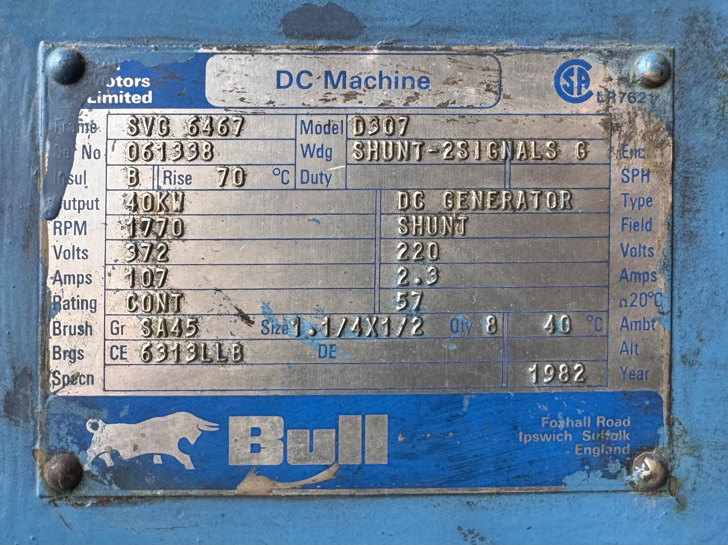 Bull Generator 60HP 40KW 1770RPM SVG 6467 #4044
