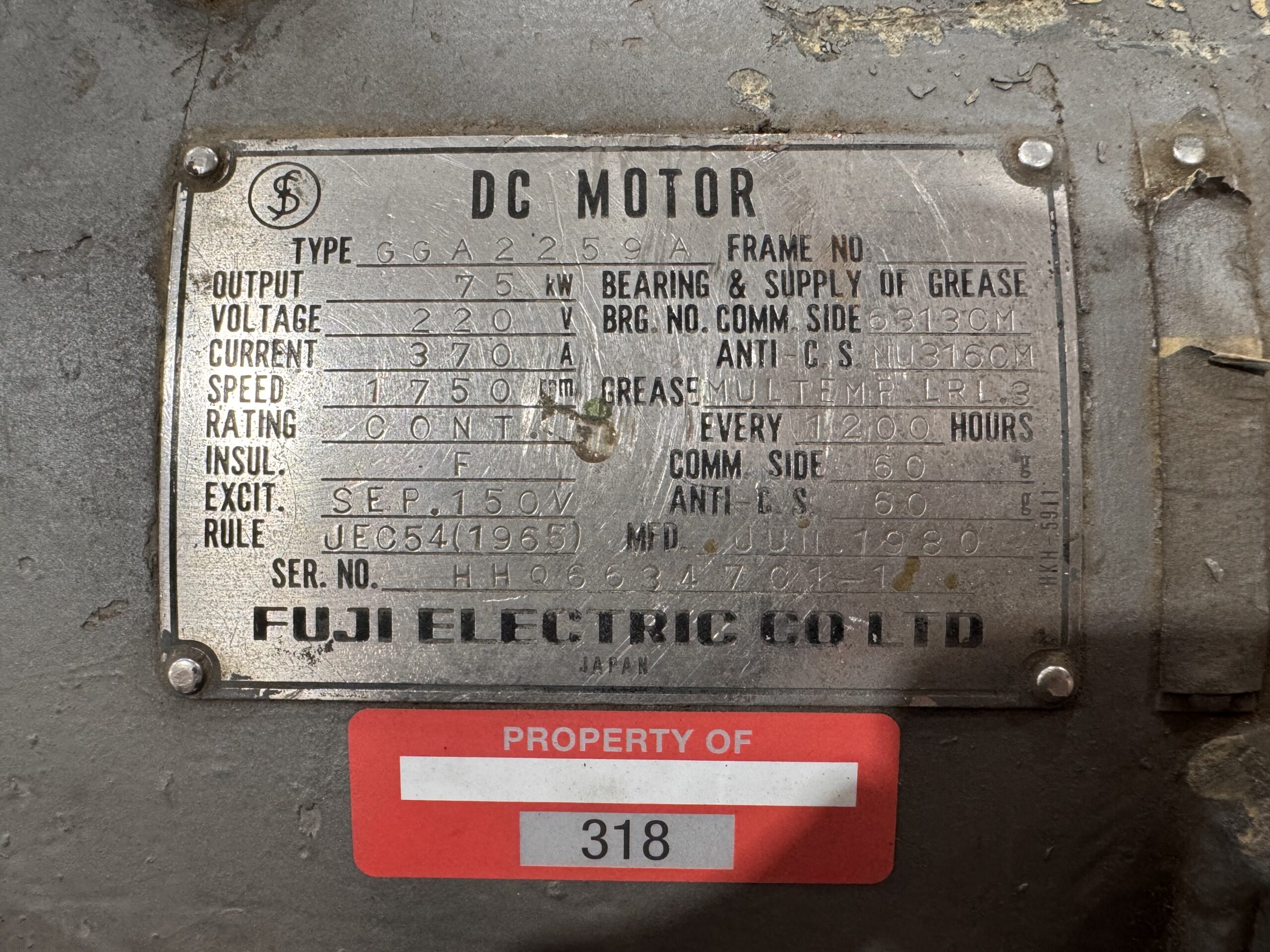 Item # P.O.318 — Fuji Electric DC Motor 75KW 220V 370A 1750RPM #P.O.318