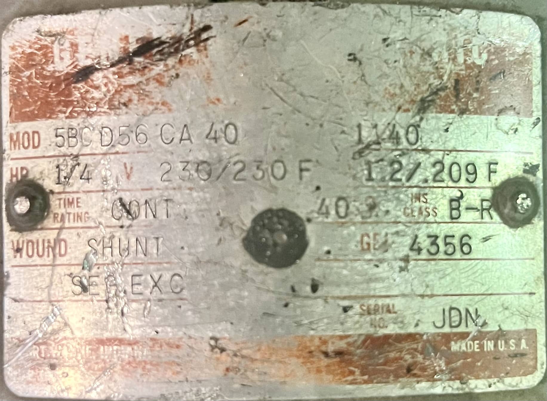 Item # 1068 — General Electric Door Motor 1/4HP 1140RPM 1068