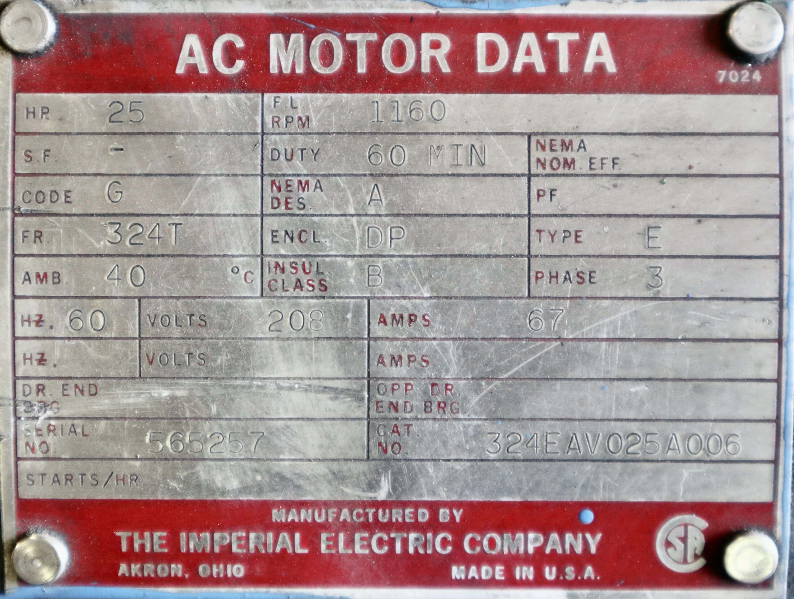 Item # 0552 — Imperial Electric AC Motor 25HP 1160RPM 324T #0552