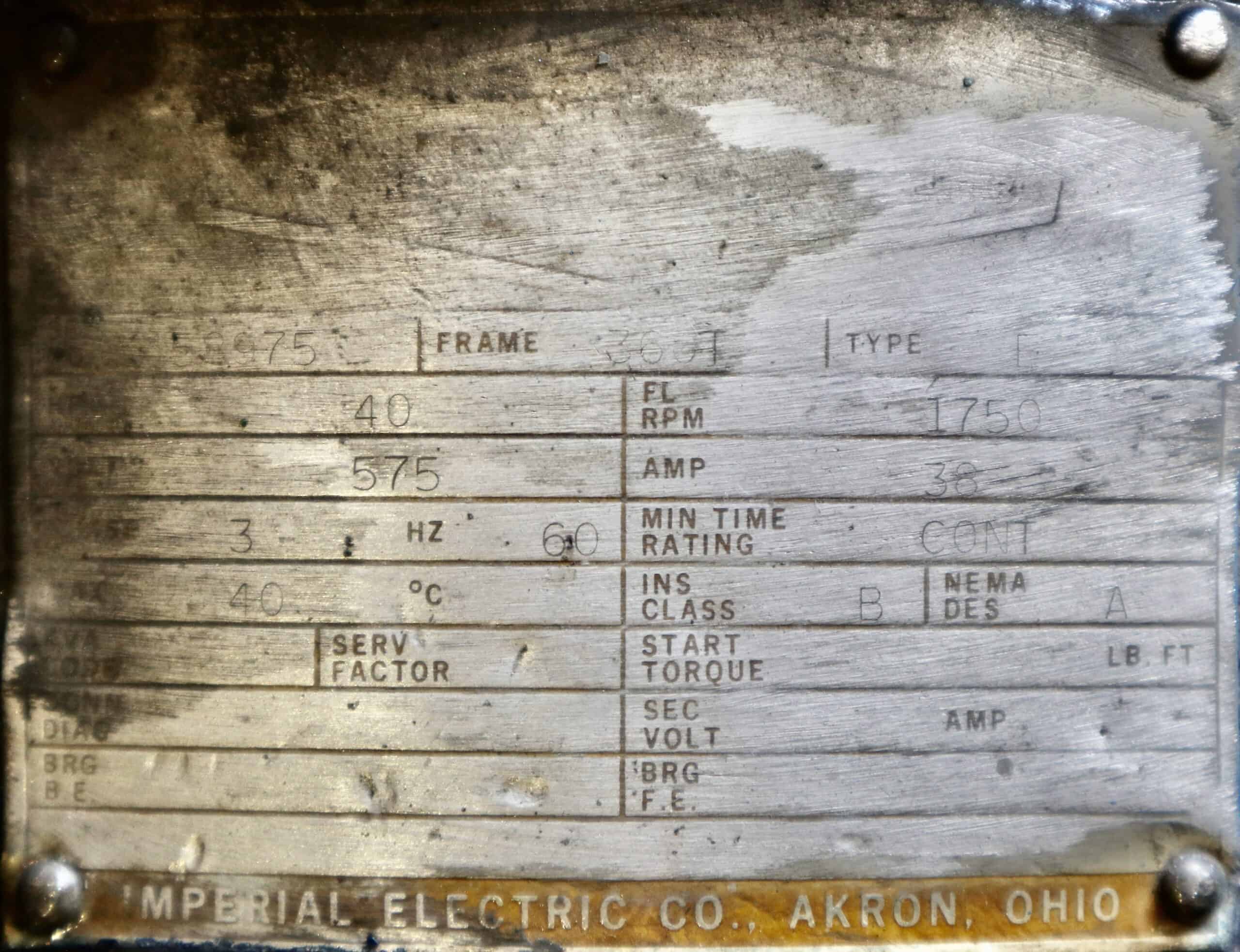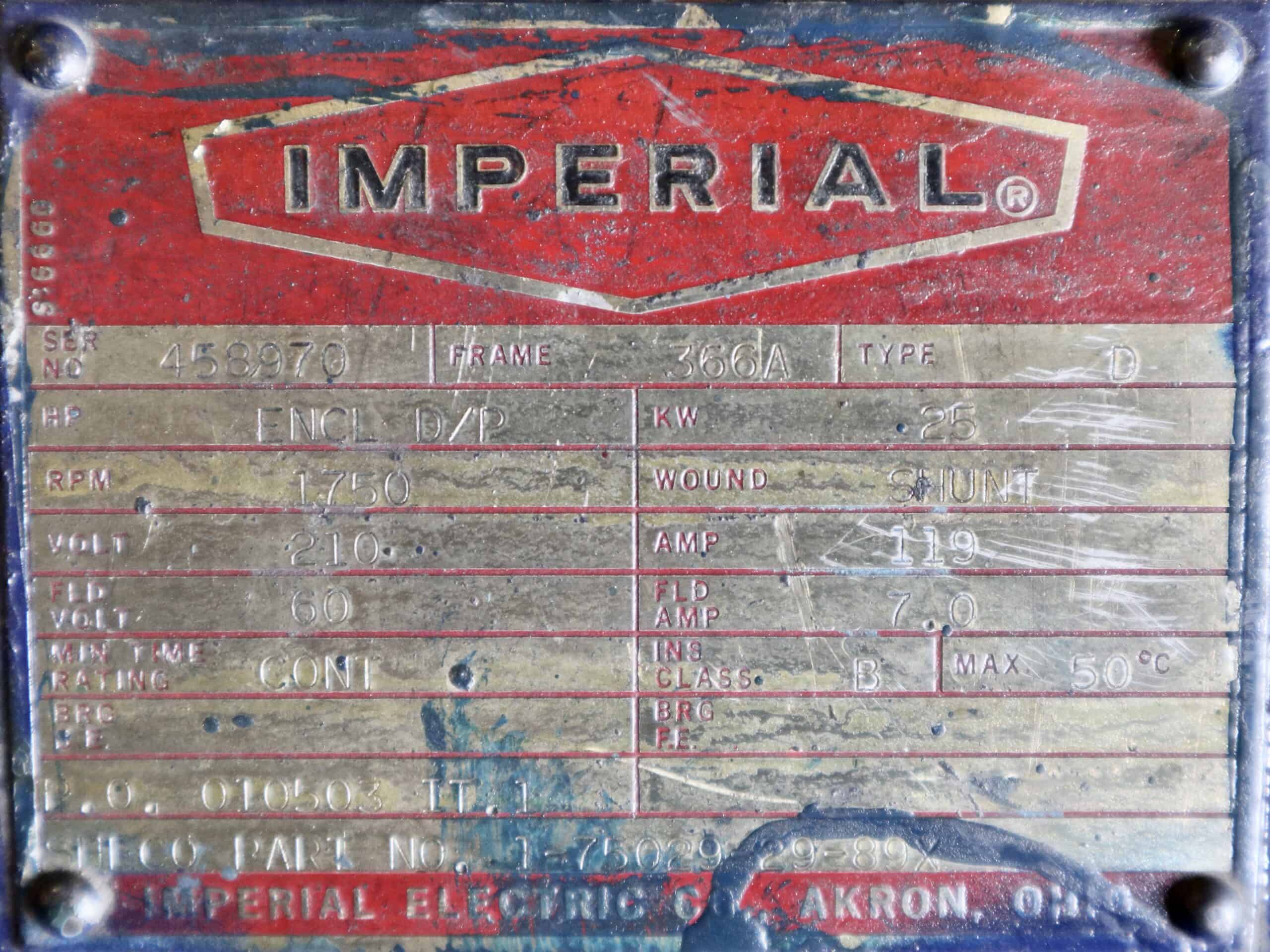 Imperial Electric Generator 40HP 25KW 1750RPM 360T/366A #352