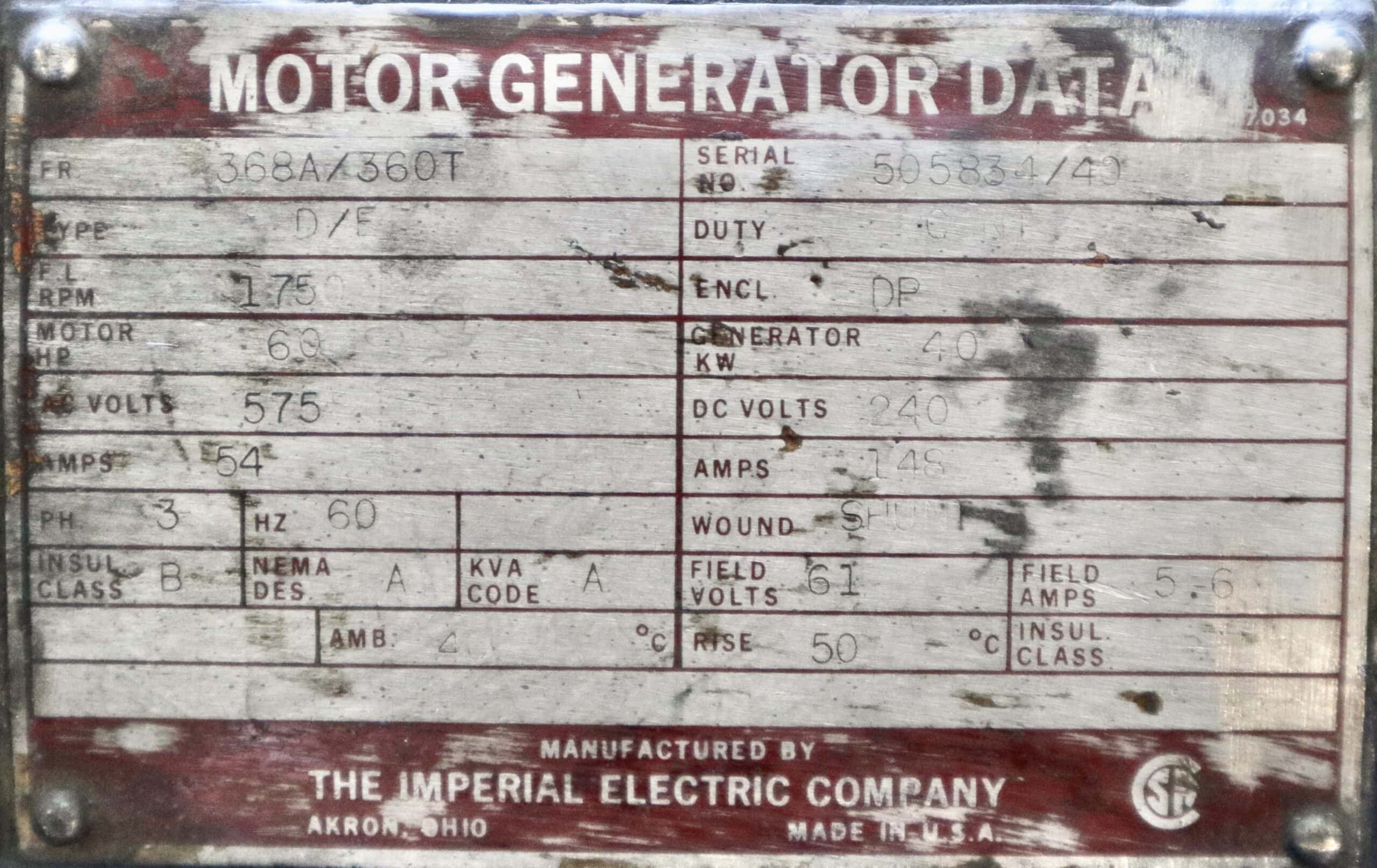 Imperial Electric Generator 60HP 40KW 1750RPM 368A/360T #355