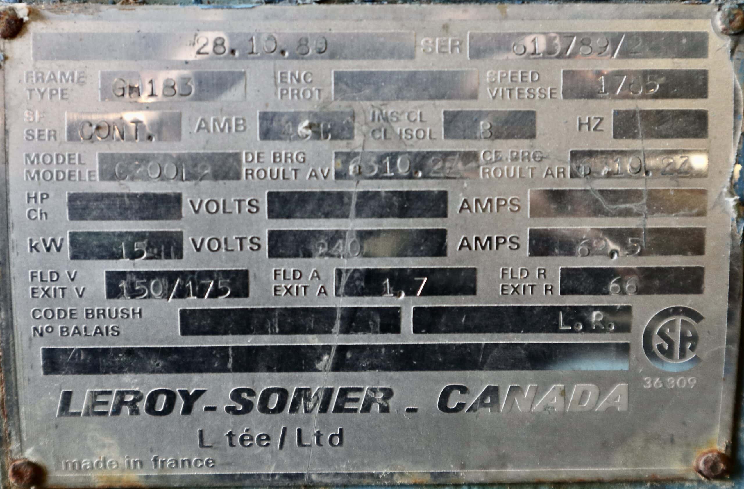 Item # P.O.143 — Leroy Somer Generator 25HP 15KW 1765RPM GH183 #143