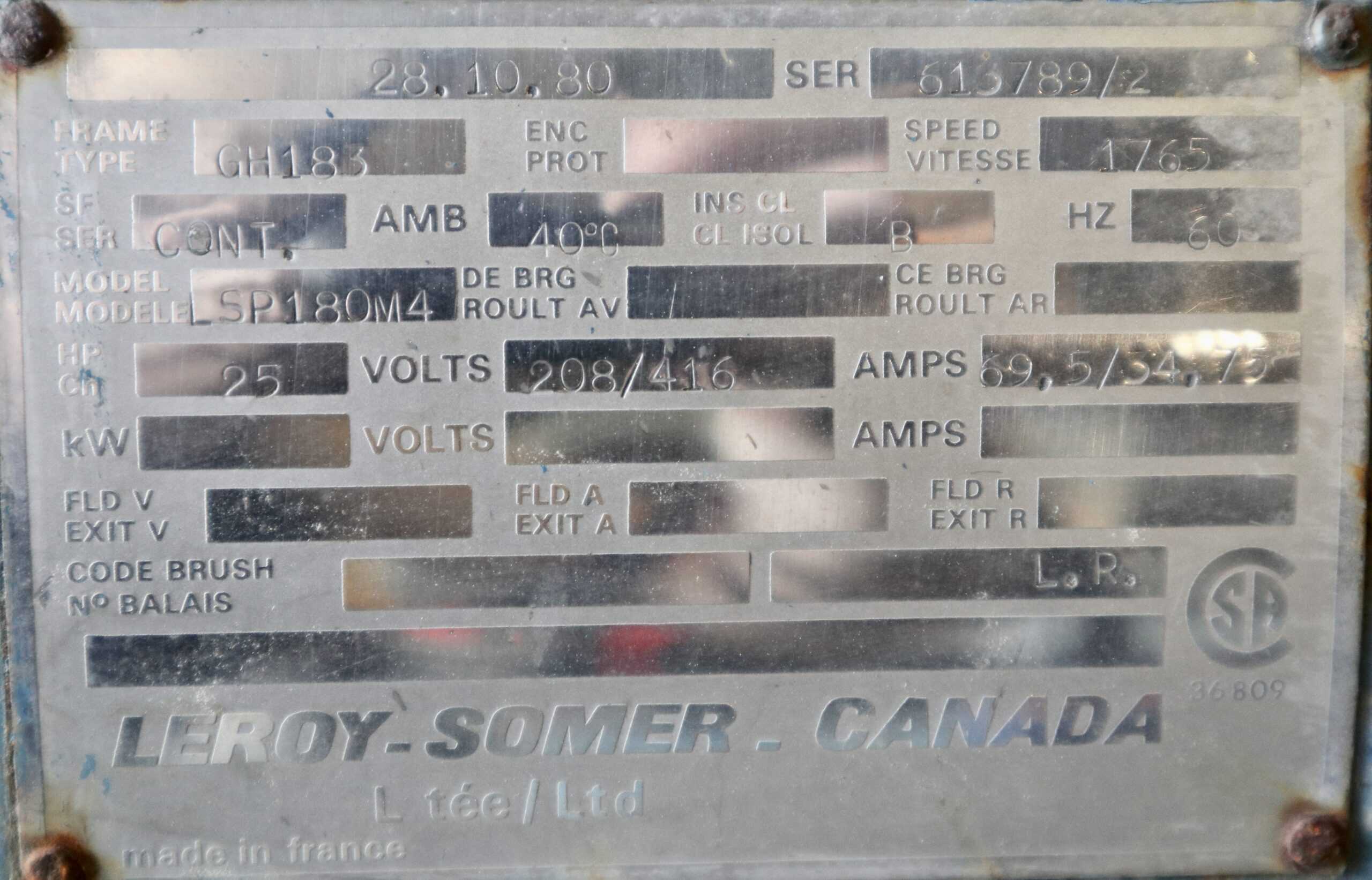 Leroy Somer Generator 25HP 15KW 1765RPM GH183 #143