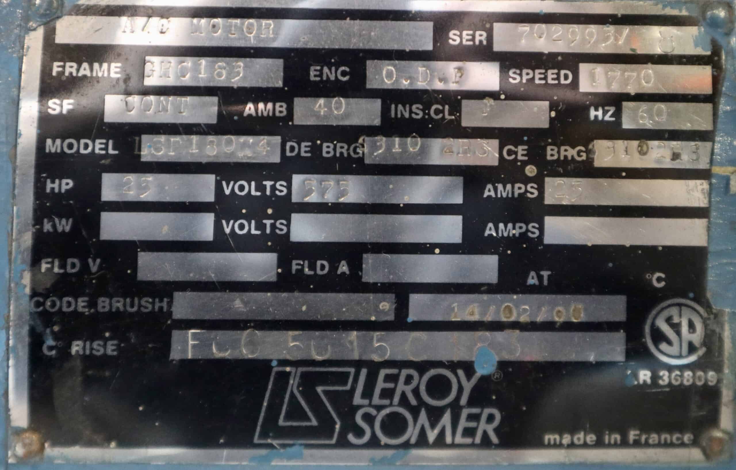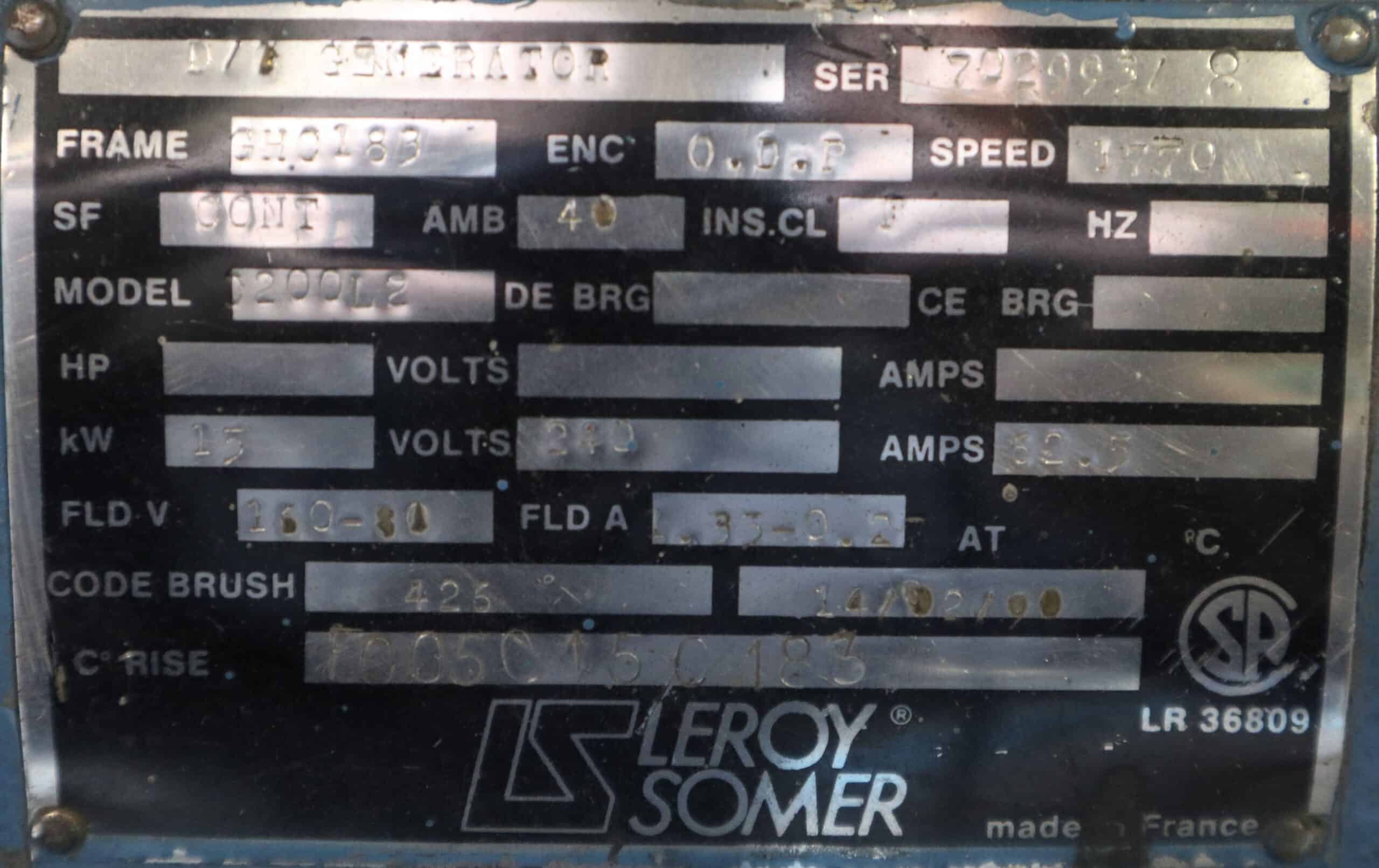 Item # P.O.300 — Leroy Somer Generator 25HP 15KW 1770RPM GHC183 #300