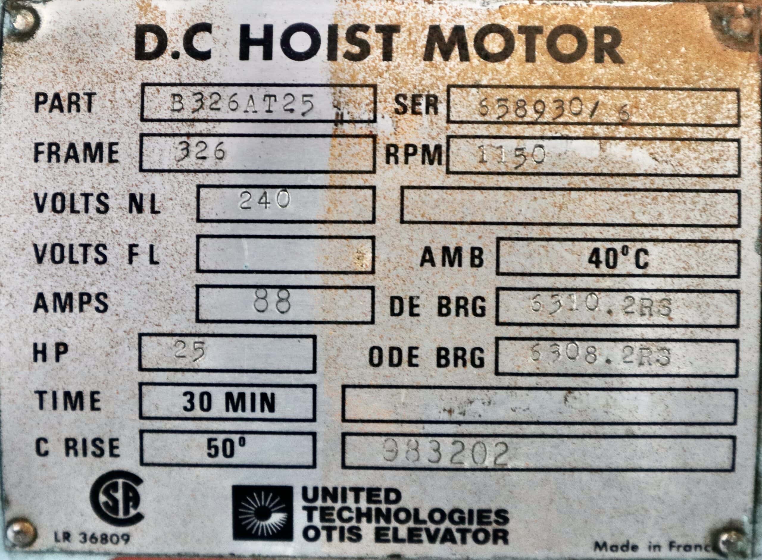 Item # P.O.236 — Otis DC Hoist Motor 25HP 1150RPM 326 #236