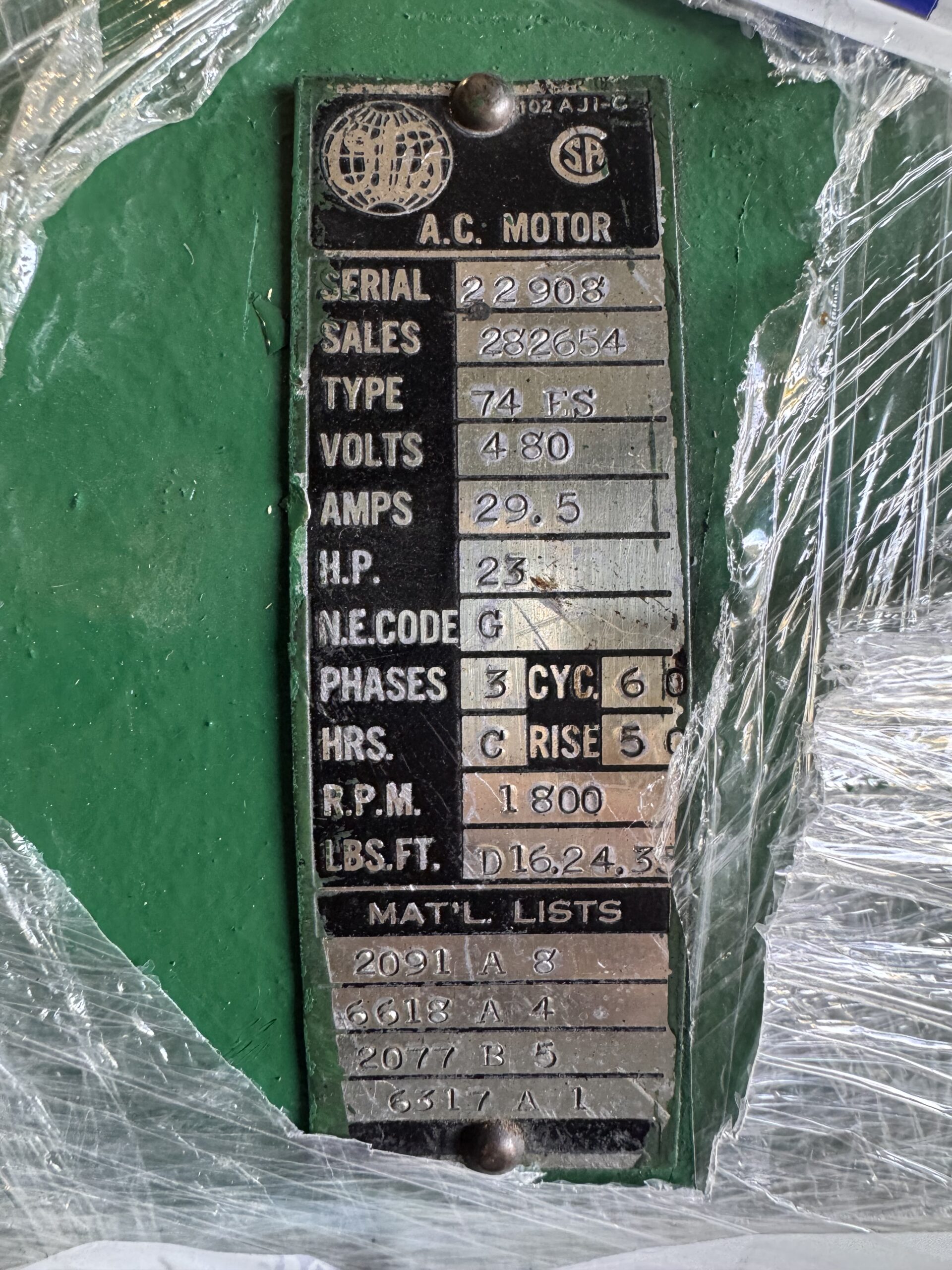 Item # 2058 — Otis Generator 23HP 15KW 1800RPM 74ES/71GA #2058