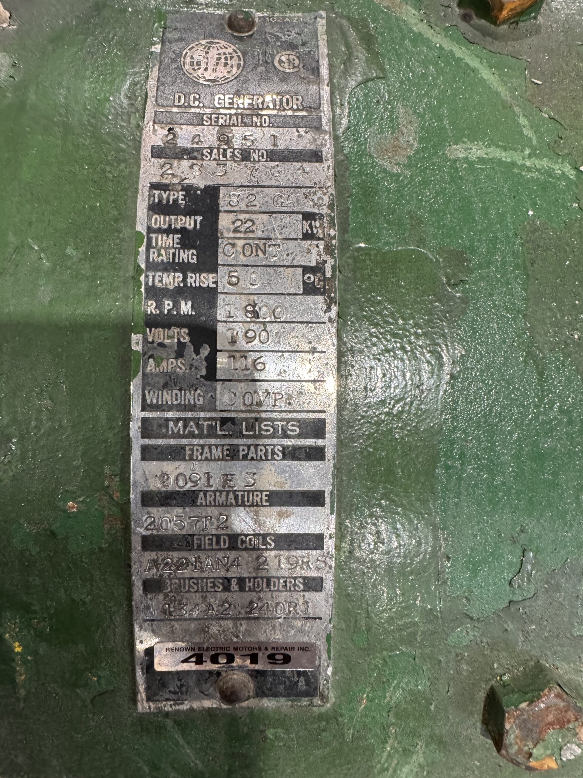 Item # 4019 — Otis MG Set 35HP 22KW 1800RPM 84ES/32G #4019