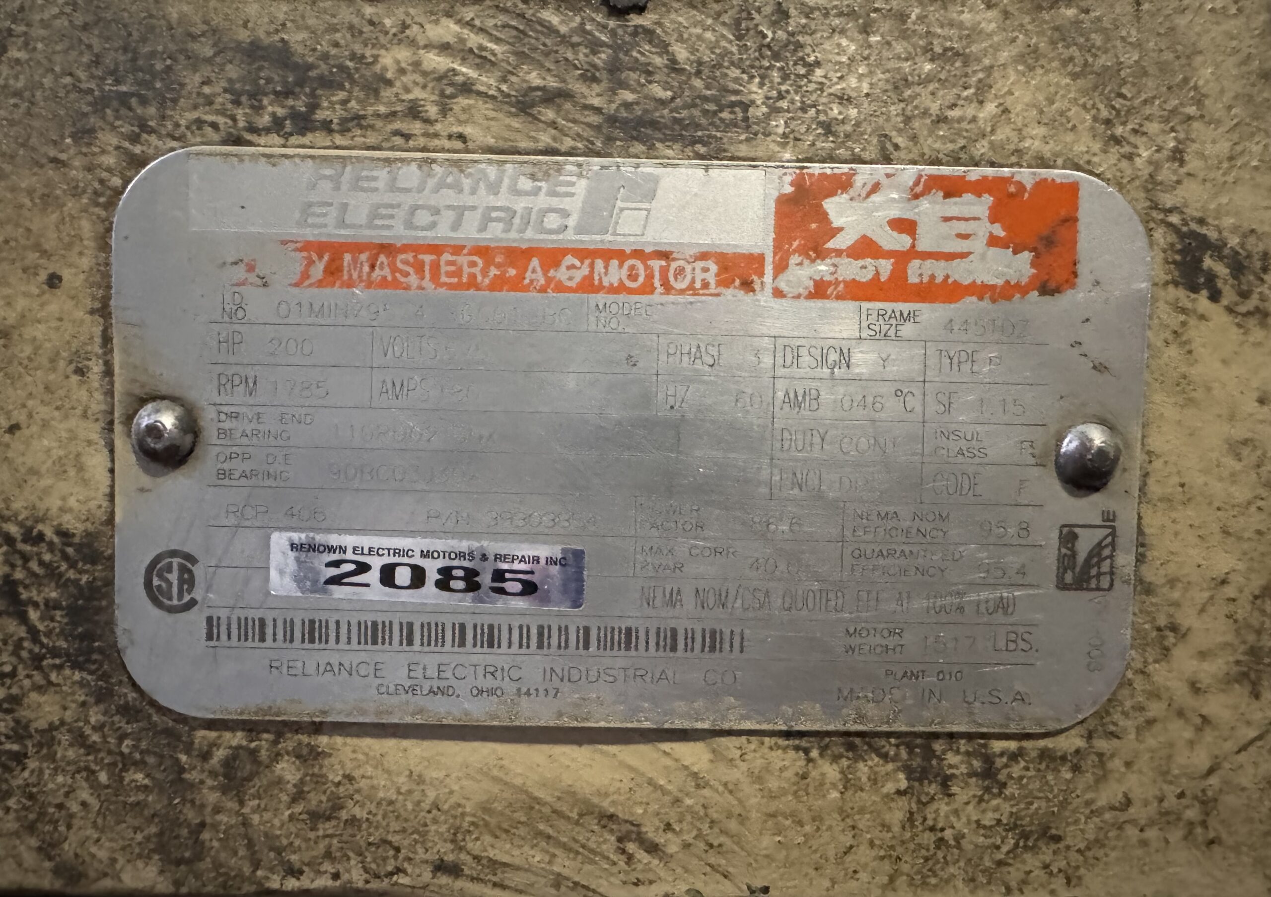 Reliance AC Industrial 200HP 1785RPM 445TDZ #2085