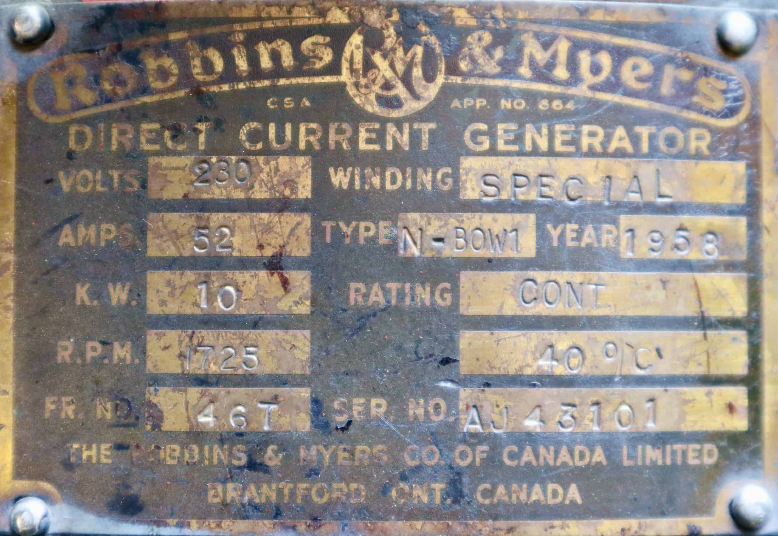 Item # P.O.312 — Robbins and Myers Generator 20HP 10KW 1725RPM 324U/46T #312