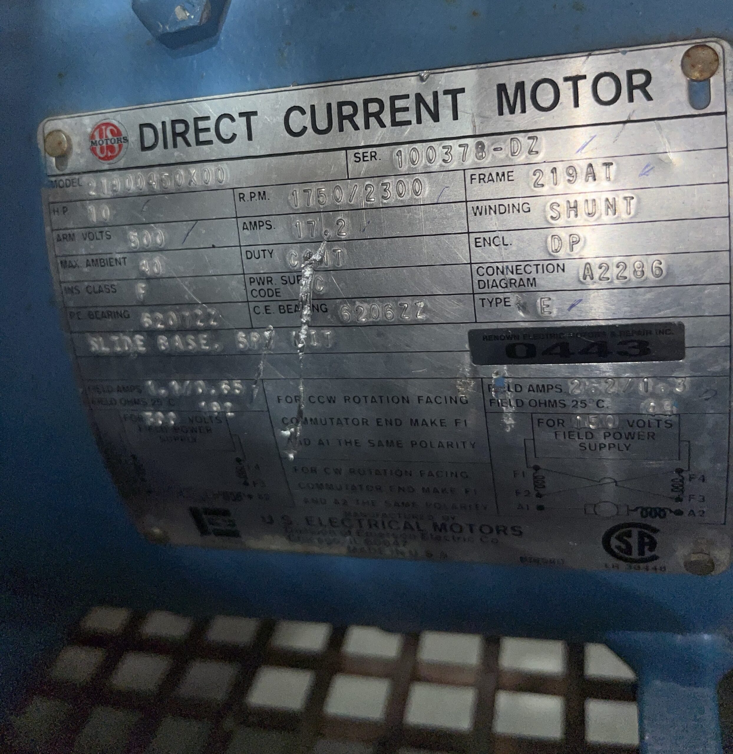 US Motors 10HP 1750/2300RPM 219AT #0443
