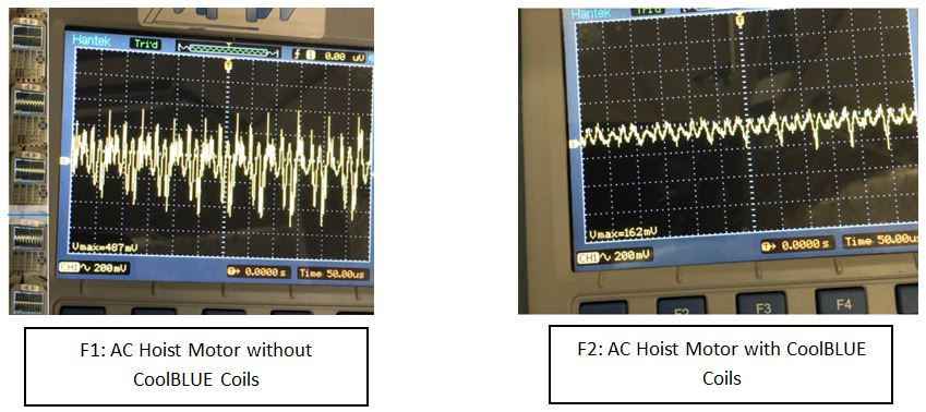 AC Hoist Motor Electrical Noise – Before & After CoolBLUE installation: