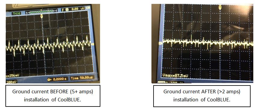 AC Motor Ground Current – Before & After CoolBLUE installation: