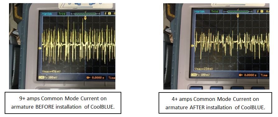 DC Hoist Motor Common Mode Current – Before & After CoolBLUE installation: